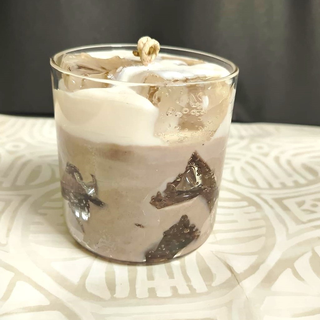 Indulge your senses with our Iced Mocha Swirl Soy Candle – a deliciously aesthetic candle that looks like a creamy iced mocha but is all wax! This hand-poured beauty is crafted in a clear glass tumbler with swirls of chocolate-brown wax with ice and a whipped cream-like topping, finished with a natural cotton wick.