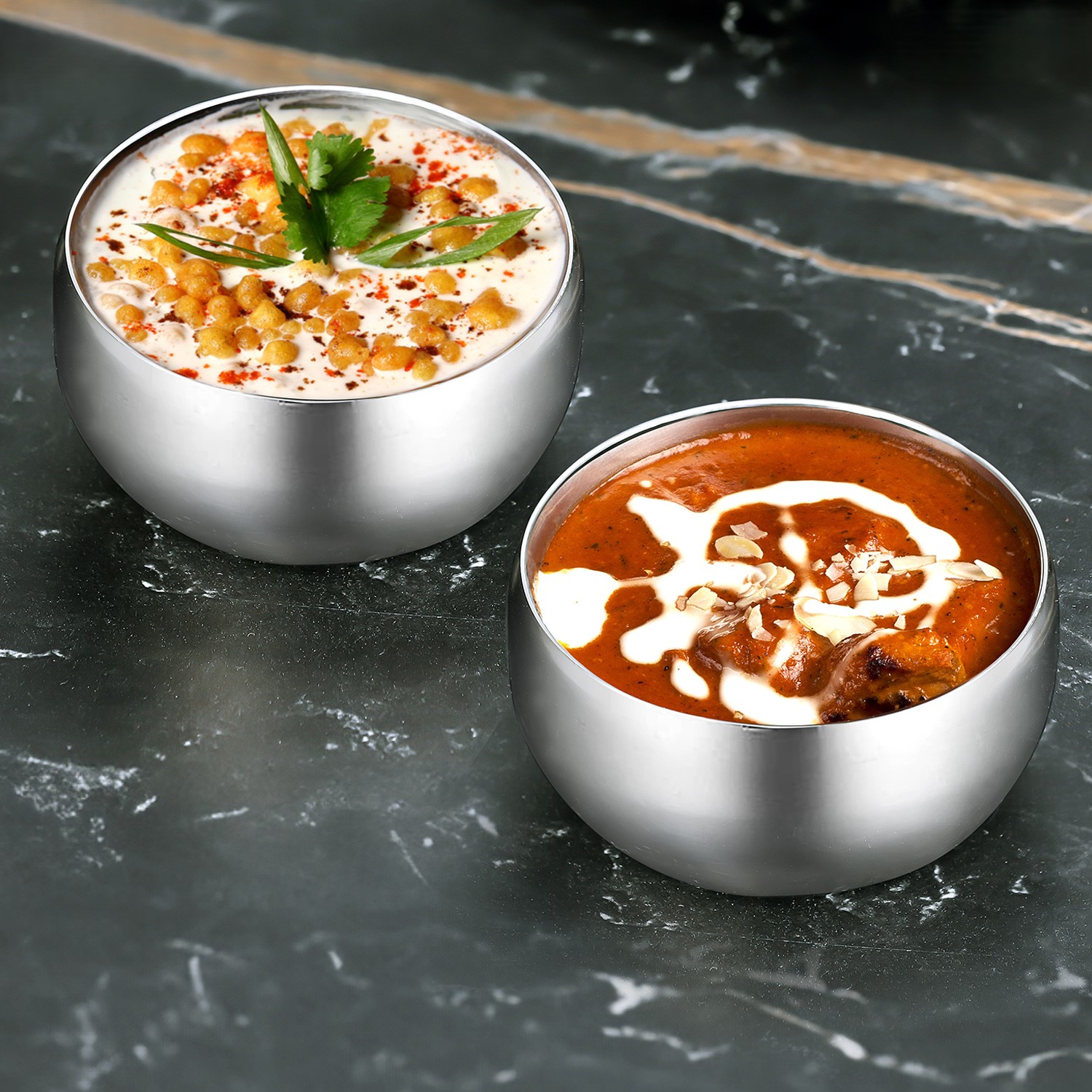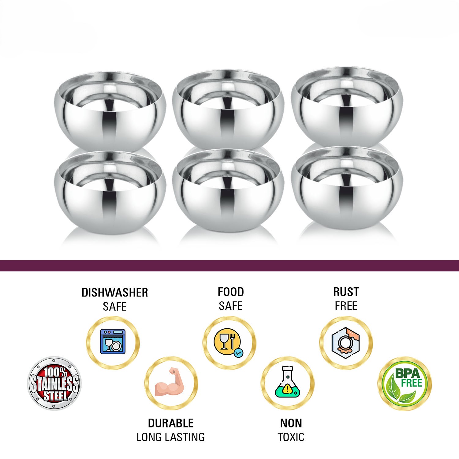 Bring elegance to your dining table with Jack and Rex Stainless Steel Laser Designer Veg Bowls. This heavy gauge set of 6 bowls (180 ML each) is perfect for serving dal, sabji, chutneys or snacks. Featuring a premium mirror finish and rust-free, food-grade steel, these bowls are durable, dishwasher safe and a must-have for every modern kitchen. Discover more quality kitchen essentials at jackandrex.com.