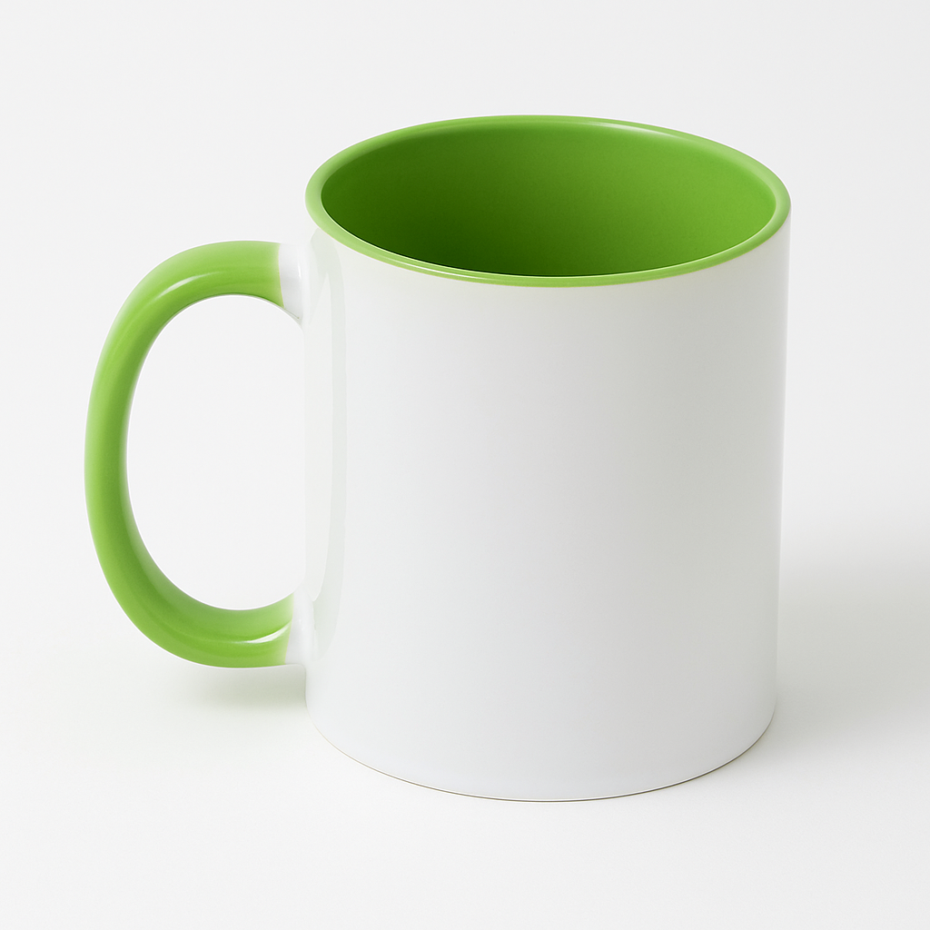 Premium White Ceramic Mug with Green Interior & Handle – 11 oz | Glossy Two-Tone Coffee Mug | Sublimation Ready | Dishwasher Safe